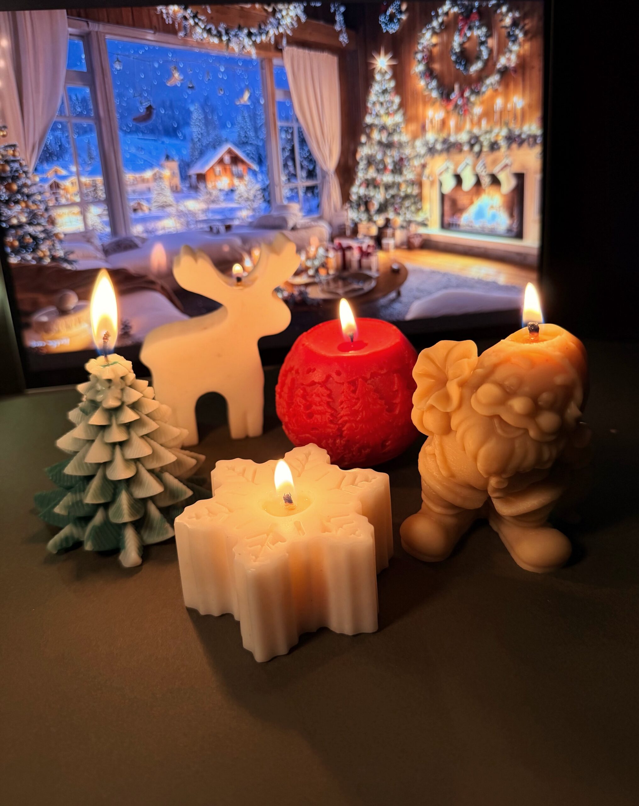 • Includes 5 festive candles — Snowflake, Santa, Reindeer, Christmas Bell & Christmas Tree